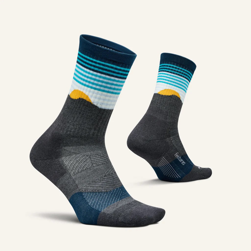 Introducing the Feetures Trail Sock. Conquer your next hike or trail run and take on a rougher terrain in a sock engineered with anatomical design and targeted compression, providing a Custom-Like Fit and reduced risk of blisters, plus Max Cushion for added impact protection.