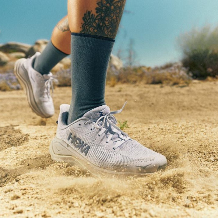 Built at the intersection of road and trail, the Hoka Challenger 8 delivers all the smooth cushioning and confidence-inspiring traction you’ll need to tackle a variety of terrain. A gravel-grinding workhorse loved for its hyper cushy ride, Hoka have added even more foam underfoot and improved the fit since their last iteration. Finished with a minimal mesh upper, plush collar, and durable rubber toe cap, they've reimagined the orientation of their multi-directional lugs to ensure the best all-terrain ride yet.